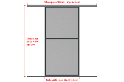 - Max. Schiebetürgröße: 120 x 240 cm