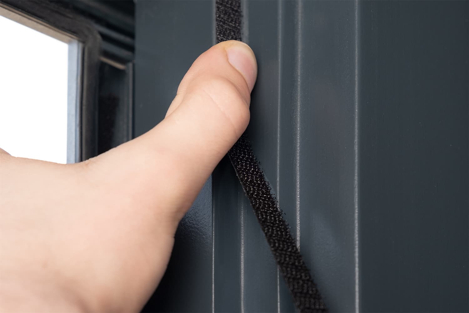 Die Montage ist ganz einfach: Gewebe und Klettband passend zuschneiden – beides am Fensterrahmen fixieren – fertig!