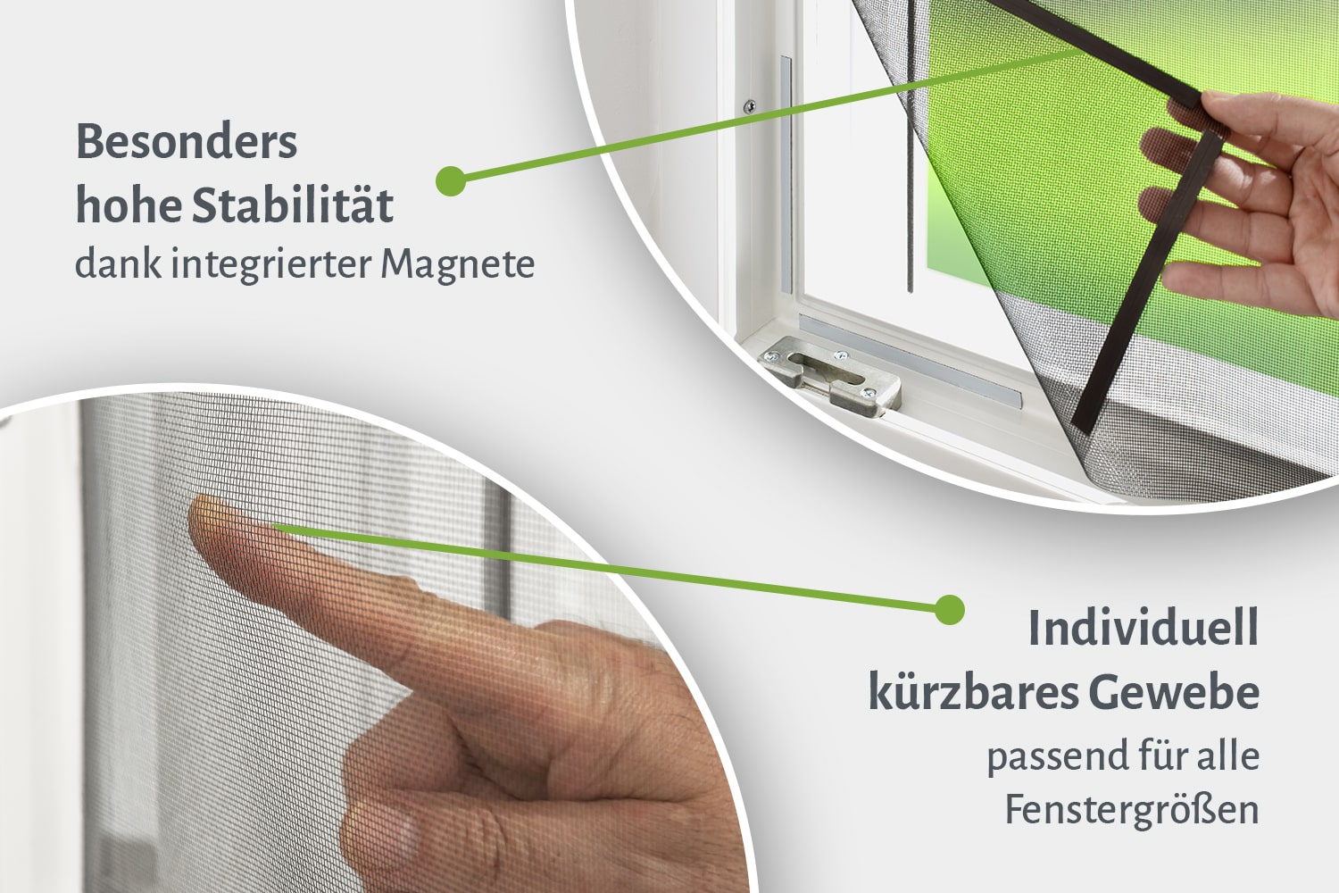 Dieses Fliegengitter-Gewebe sorgt für eine zuverlässige Barriere gegen ungebetene Eindringlinge – und bewahrt dabei Licht und Luft im Raum. Das fein strukturierte Polyestergewebe überzeugt durch Stabilität, Witterungsbeständigkeit und eine dezente Optik. Zwei durchdachte Befestigungsmöglichkeiten – wahlweise per Klettband oder Magnet – ermöglichen eine einfache Anbringung, ganz ohne Bohren oder Schrauben. Das Gewebe lässt sich individuell zuschneiden und passt sich so verschiedenen Fenstergrößen passgenau an.