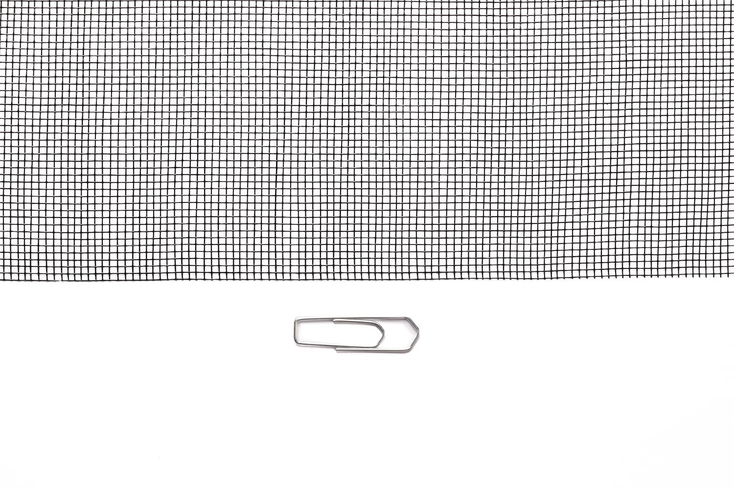 Das Fiberglasgewebe hat eine bereits zugeschnittene Größe von 130 x 150 cm und kann beliebig gekürzt werden, die Farbe des Fliegengitters ist schwarz.
