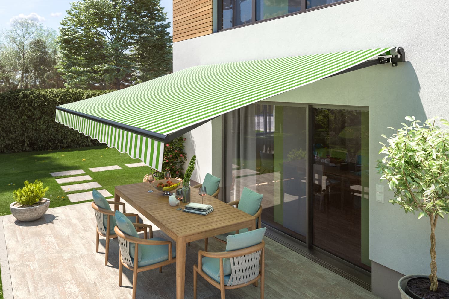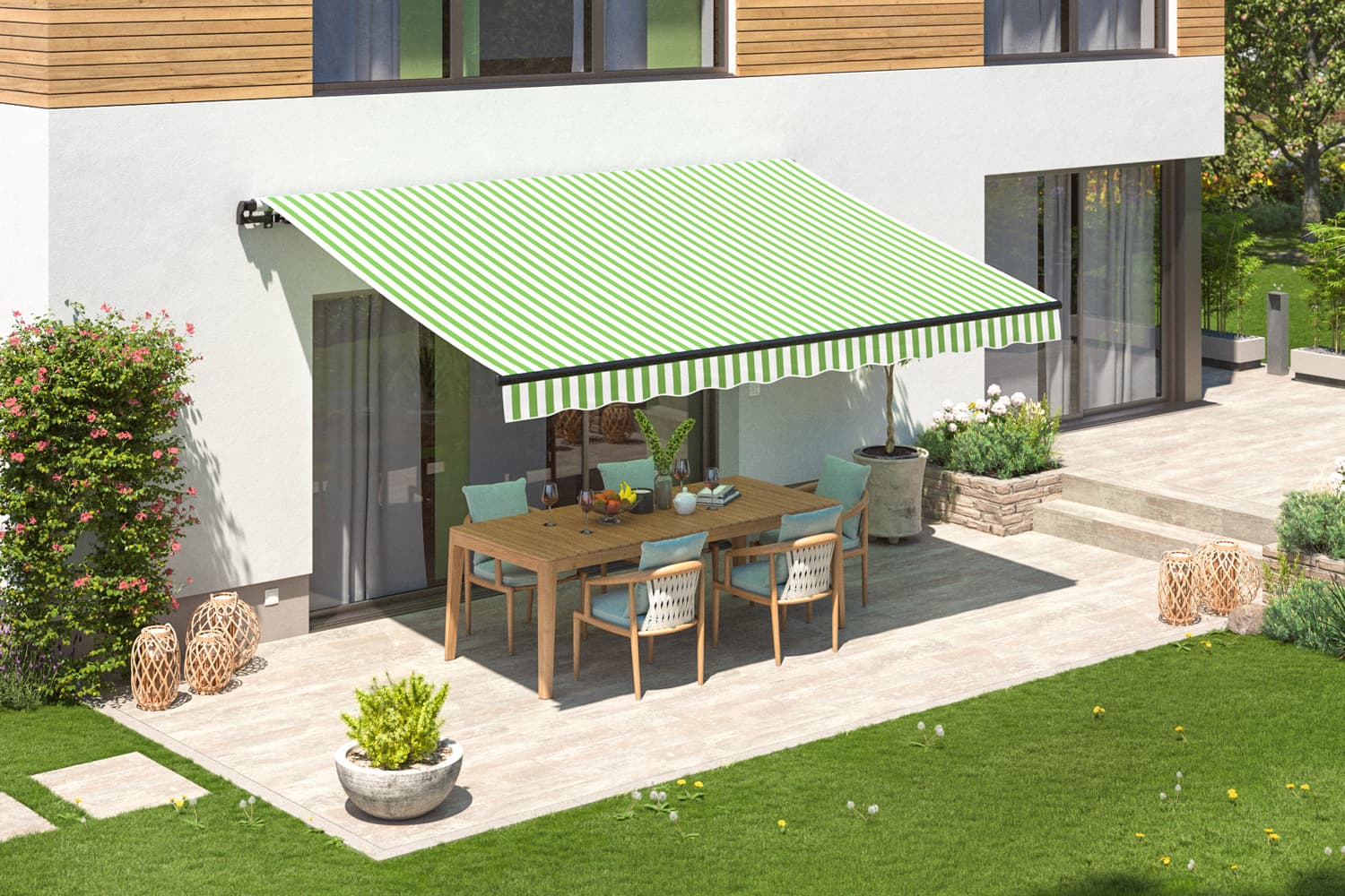 Das optional wählbare Regendach schützt das Markisentuch und die weiteren Bestandteile deiner Gelenkarmmarkise zuverlässig vor Sonne, Schmutz, Regen und anderen Witterungen. Es wird einfach an der vorhandenen Markise angebracht und sorgt so für eine längere Lebensdauer und einen optimalen Zustand.