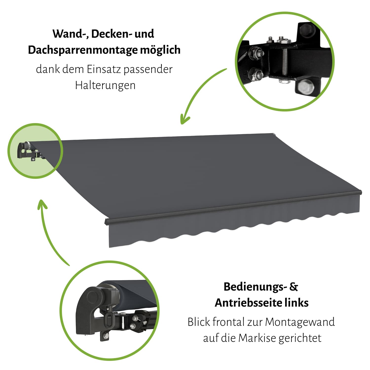 Wandhalterungen können je nach Größe der Markise abweichen.