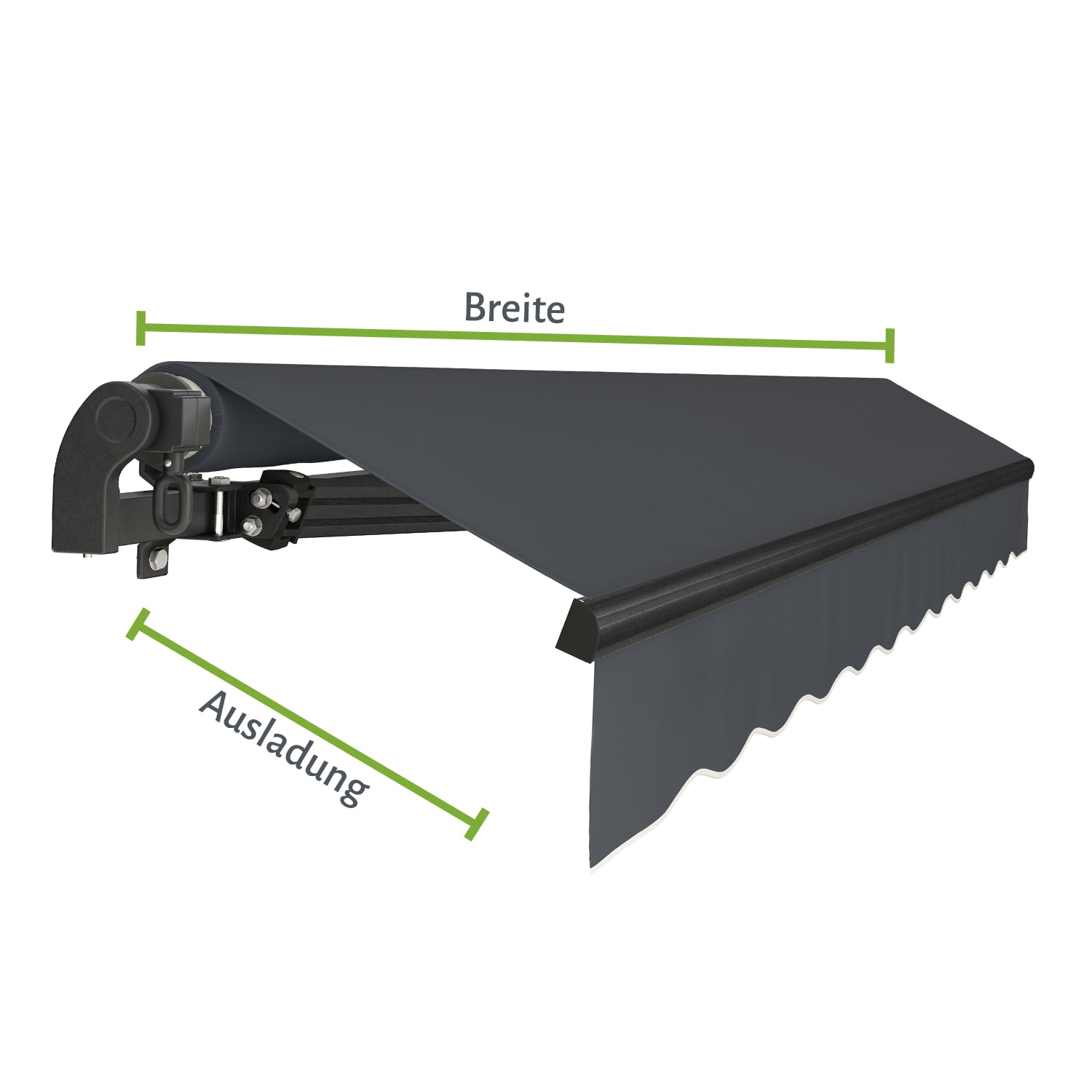 Bitte beachten: Markisen ab einer Länge von 3,5 m werden mit Spedition geliefert. Diese wird sich vor der Lieferung telefonisch oder per E-Mail mit dir in Verbindung setzen und einen Liefertermin vorschlagen. Nach deiner Bestätigung erfolgt die Anlieferung. Die Markisen aus unserem Sortiment können je nach gewähltem Modell und Größe über 90 kg wiegen. Da die Lieferung unserer Markisen frei Bordsteinkante erfolgt, bitten wir dich, für die Anlieferung entsprechend Hilfe zu organisieren.