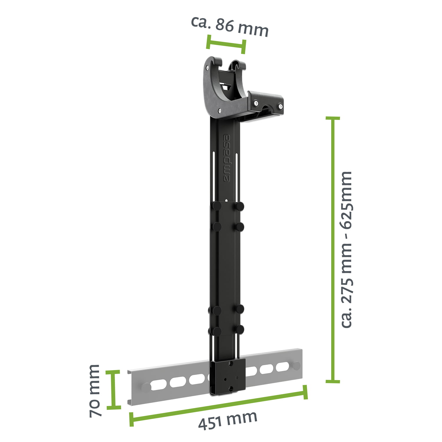 - Einstellbereich zwischen ca. 275 mm – ca. 625 mm