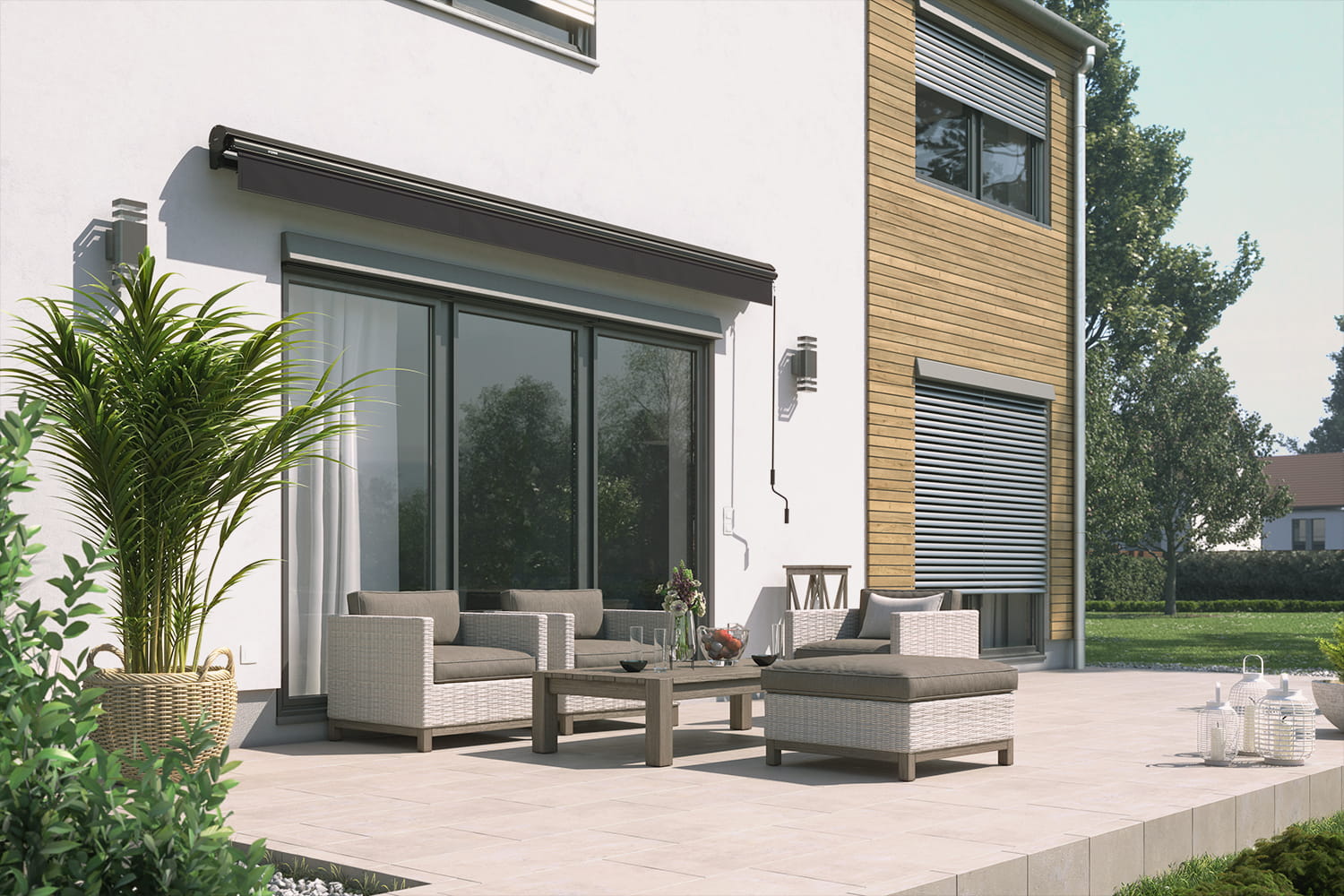 Unsere Markisen sind fertig vormontiert. Du musst die Markise also nur noch an die Fassade schrauben und fertig.