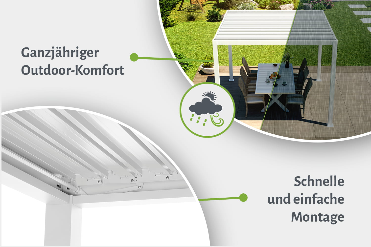 Bleibe im Trockenen dank geschlossenem Lamellendach!