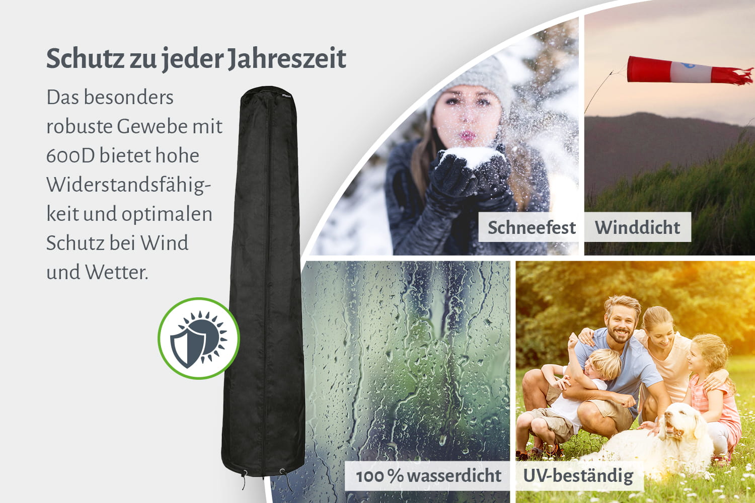 - Strapazierfähiger, witterungsbeständiger Stoff für jede Jahreszeit
