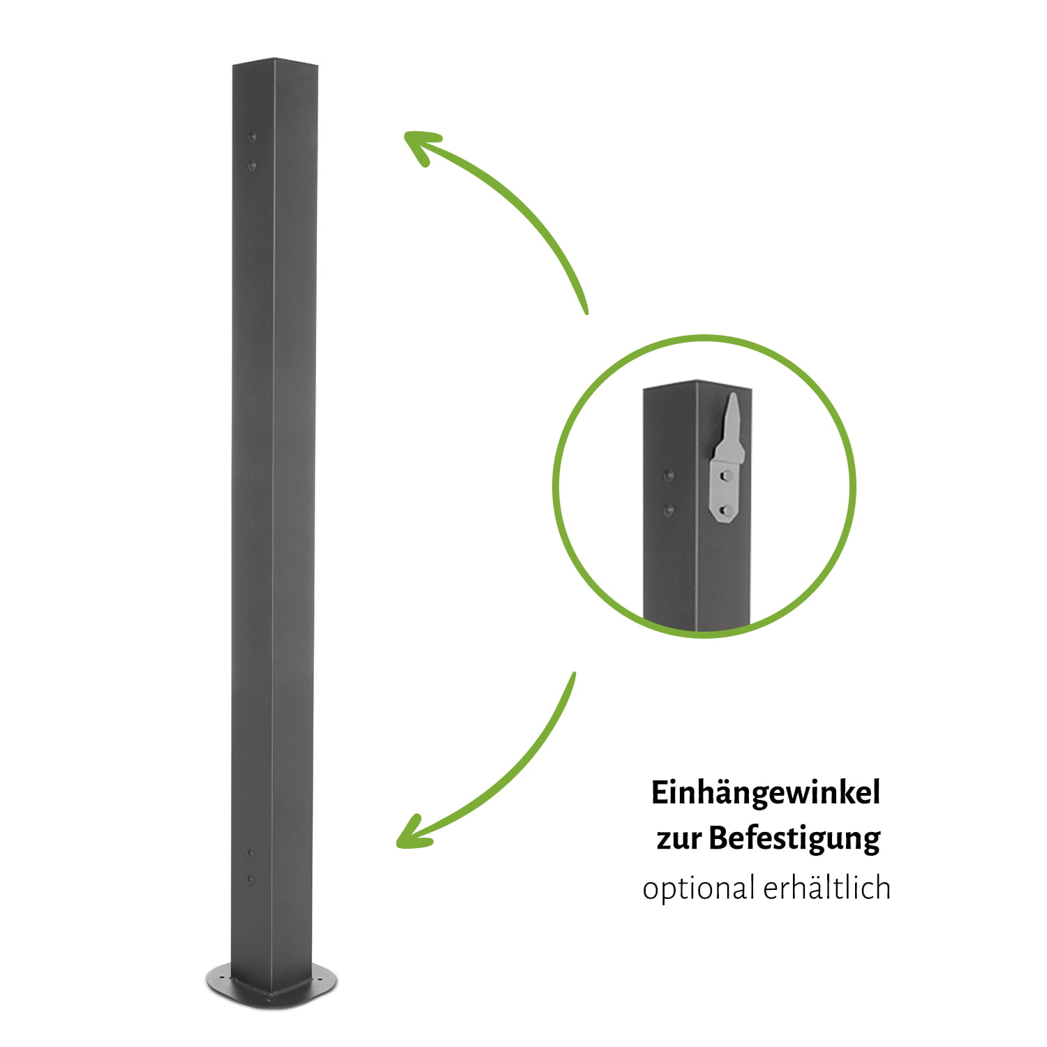 - Abmessungen mit Bodenplatte L x B x H: 20 x 20 x 150 cm