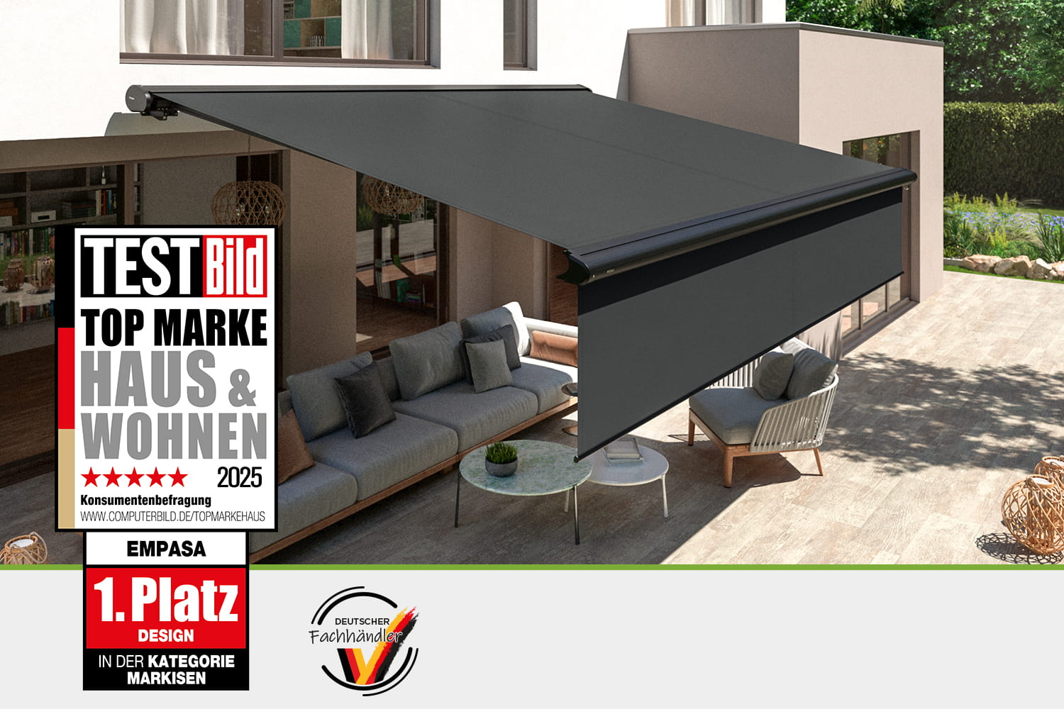 Somit sehe ich erstmal zufrieden u. gelassen der Zukunft mit meiner Empasa Vollkassettenmarkise "Premium" entgegen.