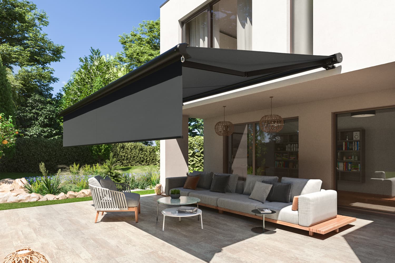 Unsere elektrische Vollkassettenmarkise "PREMIUM" schützt dich zuverlässig vor der Sonne und lässt sich ganz entspannt per Fernbedienung betätigen, während du es dir auf deiner Terrasse gemütlich machst. Die Vollkassette schützt das Markisentuch von allen Seiten vor Schmutz und Witterungen. Der manuelle Volant sorgt dafür, dass du und deine Liebsten auch bei tiefstehender Sonne nicht geblendet werden. Der zusätzliche Sonnenschutz kann bequem per Handkurbel ein- und ausgefahren werden. Die Markise wird standardgemäß mithilfe der mitgelieferten Wandhalterung an der Wand befestigt.